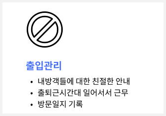 건물 내방객에 대한 친절한 안내와 절도 있는 동작을 유지하며, 입주민들의 안전활동보장과 도난사고예방을 함으로써 고객사의